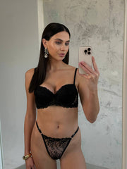 Balenli Dantel Sütyen Takımı - Siyah